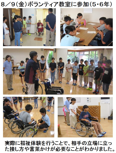 校区内にある特別養護老人ホーム大矢荘を訪問し、福祉ボランティアの体験活動に参加しました。