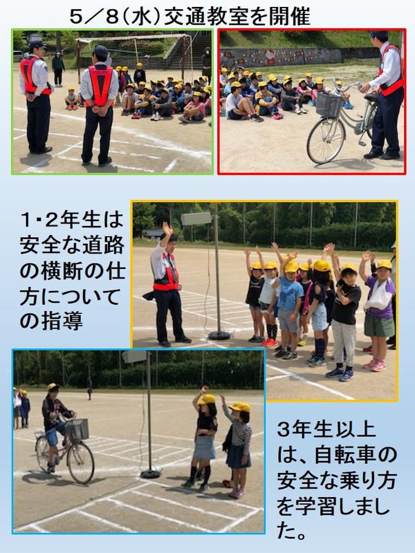 交通教室で山都警察署より子どもたちの指導に来ていただきました。低学年は、安全な道路の横断の仕方、高学年は、自転車の点検法と安全に自転車に乗るためには、どんなことを注意したらいいかを、ていねいに教えていただきました。命を守り、事故に巻き込まれないようにするためにも、これから一人一人が危険予知力をつけられるよう、家庭や地域と連携し、取り組んでいきたいと思います。