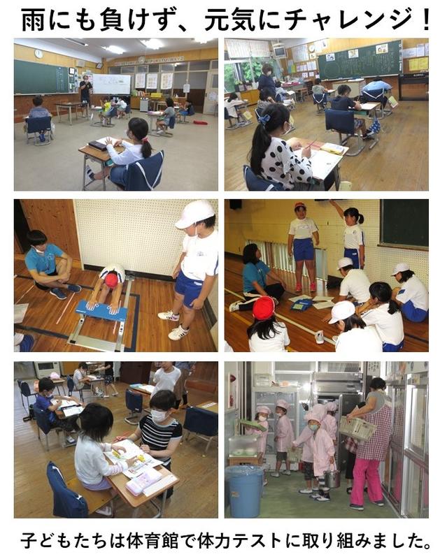 今年は、新型コロナウイルスによる休校で、例年5月に行われる健康診断や体力テストも、この6月からの実施となっています。臨時休校中に体を動かす機会が少なかった子どもたちの中には、少し体力が落ち気味の子どもたちもいるようです。これからいろいろな運動や取組を行うことで、体力についても早くもとにもどせるようにがんばってほしいと願っています。1年生の子どもたちも、小学校に入っての給食も2週目となり、給食の準備にもだいぶ慣れてきたようです。