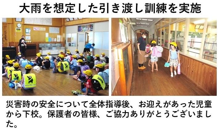 今日は保護者へ「引き渡し依頼メール」を送り、学校まで迎えをお願いする訓練を行いました。事前に各家庭に渡してある「命のカード」を持参してもらい、全員、安全に引き渡すことができ、訓練を終了しました。