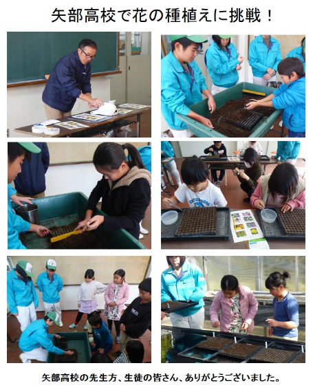矢部高校の食農科学科の3年生と、花の苗栽培交流活動を行いました。