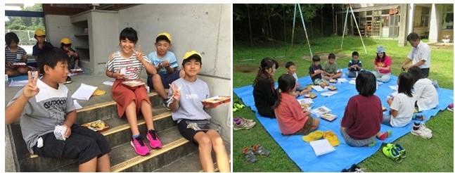 給食室の先生方が、一人一人お弁当のような給食を作っていただき、縦割り班で場所を決め、美味しくいただきました。