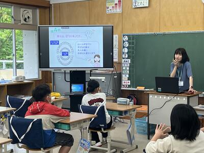 今日は、第一回目です。最初に全員にやり方を養護教諭が指導しました。次回からは、毎回ミニ保健指導を行っていきます。