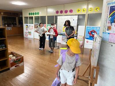 担任が面談を行っている間に、養護教諭によって、低・中・高学年別に構成的エンカウンターを行いました。構成的エンカウンターは、「仲間づくり」「仲間理解」の授業です。「合わせてパン」「指キャッチ」「風船飛ばし」などの楽しいゲーム活動で、気持ちを合わせて活動したり、軽いスキンシップで心の距離を縮め、たくさん笑い合ったりすることができました。