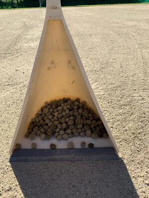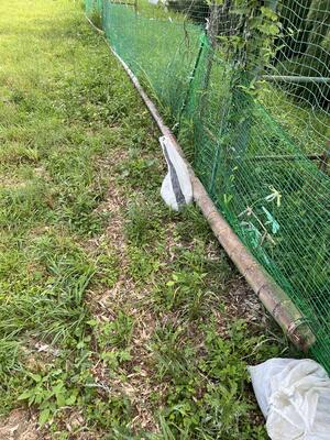 その使用目的は、運動場の外周を囲むネットの補強です。ネットを破ったり、くぐったりしてイノシシも侵入し始めたので、太い竹でガッツリ押さえました。
