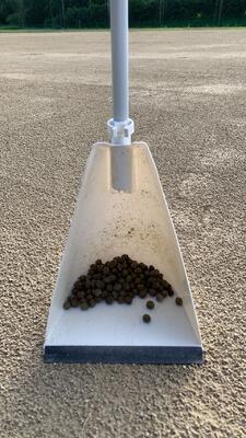 次に、整地作業で集めた土を運動場のなかなか乾かない部分に移動してくださいました。かなりの重労働です。