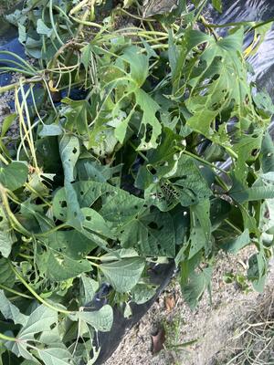 なんとなんと、青々と茂っていた葉っぱが、ほとんどすべて虫食いだらけになってしまいました。