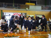 15名の1年生を迎え、学校がよりにぎやかになりました。新入生氏名点呼では、大きな声で、しっかりと返事をすることができました。また、6年生からの歓迎の言葉もとても立派でした。朝から入学式の準備や、1年生のお世話をしてくれた4・5・6年生が、とても頼もしかったです。