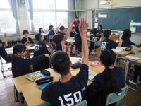 3年生では、総合的な学習の時間で、玉名市の行事や歴史について学習をしています。その学習の一環で、玉名大俵まつり実行委員会のみなさんが出前授業に来てくださいました。玉名の歴史や大俵祭りの由来について学んだ後、運動場で実際にレースで使用する重さ200Kgもの小俵ころがしにチャレンジさせてもらいました。大きな小俵に圧倒されながらも、3年生11名で一生懸命、楽しそうに引っ張っていました。自分たちが生まれ育った「ふるさと玉名」を誇りに、ますます好きになってくれたことと思います。