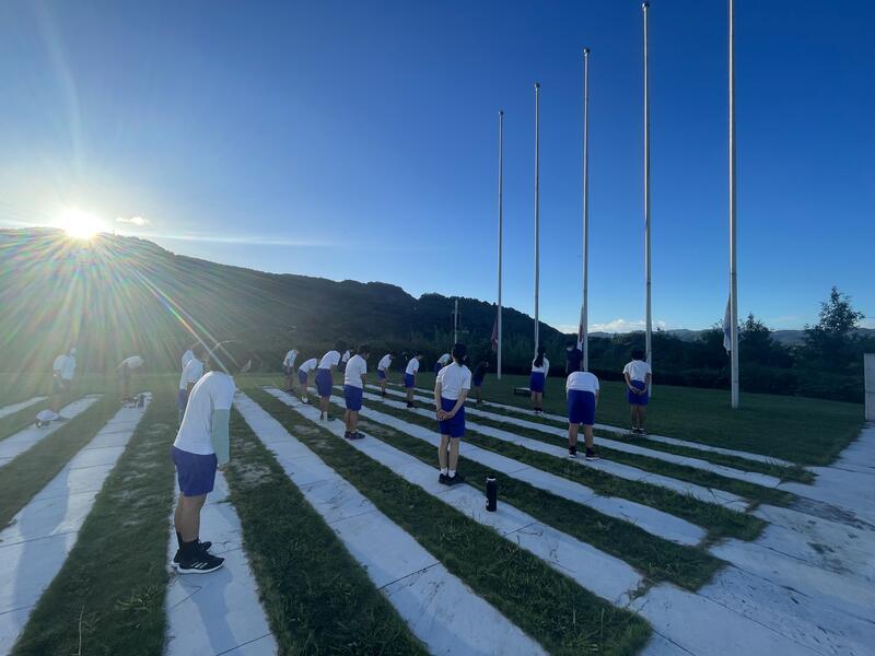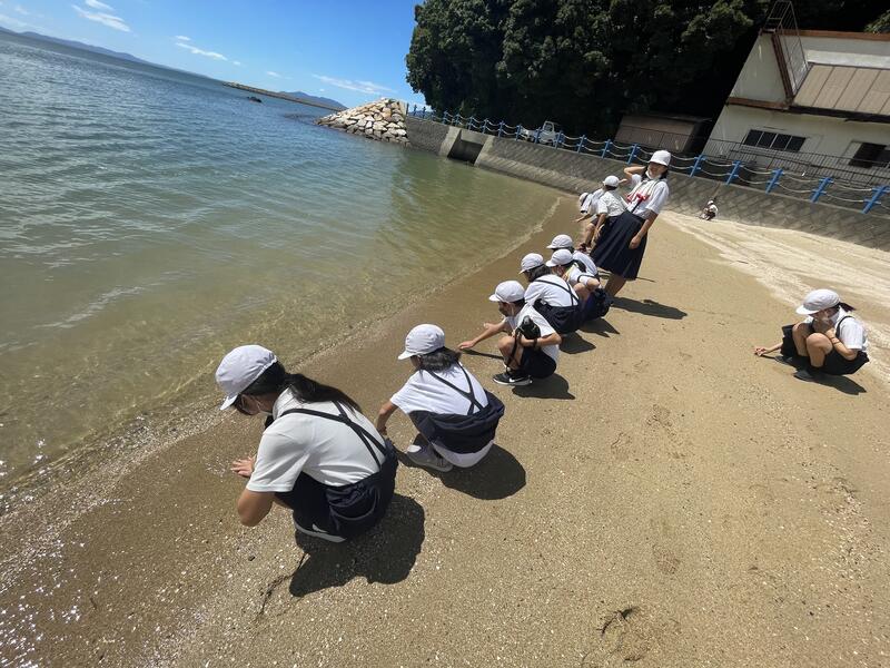 朝の集いから1日をスタートしました。海が見えるレストラン七浦で朝食を食べ、マリン活動(ペーロン)をしました。22人で力を合わせて船を進め、協力することの大切さやすばらしさを学ぶことができました。最後に、海岸散策をして2日目の活動を終えました。今回の集団宿泊での体験をこれからの日常で活かしていってほしいです。とてもすばらしい集団宿泊教室でした。