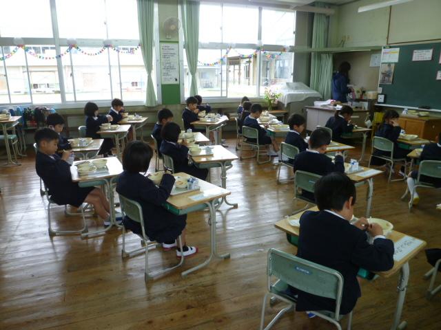 朝からは登校班で、お兄ちゃん・お姉ちゃんと安全に登校しています。授業中は、先生の話をしっかり聞いています。給食当番の仕事も自分たちでがんばり、給食もおいしく食べています。本日は一年生の歓迎集会がありましたが、大きな声で自己紹介ができました。みんな楽しい学校生活を過ごしています。