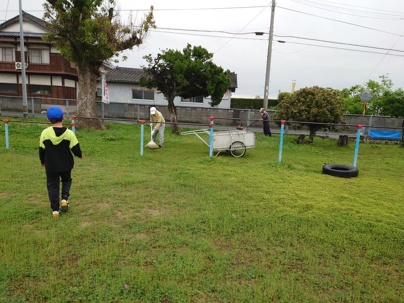 4月21日(日)、午前7時30分から今年度最初のすずかぜボランティアをしました。雨交じりの天候でしたので、参加は少ないと思いましたが、7名の参加がありました。主に草刈りと草集めが中心となりましたが、唯一参加してくれた男の子は芝刈りをしてくれました。