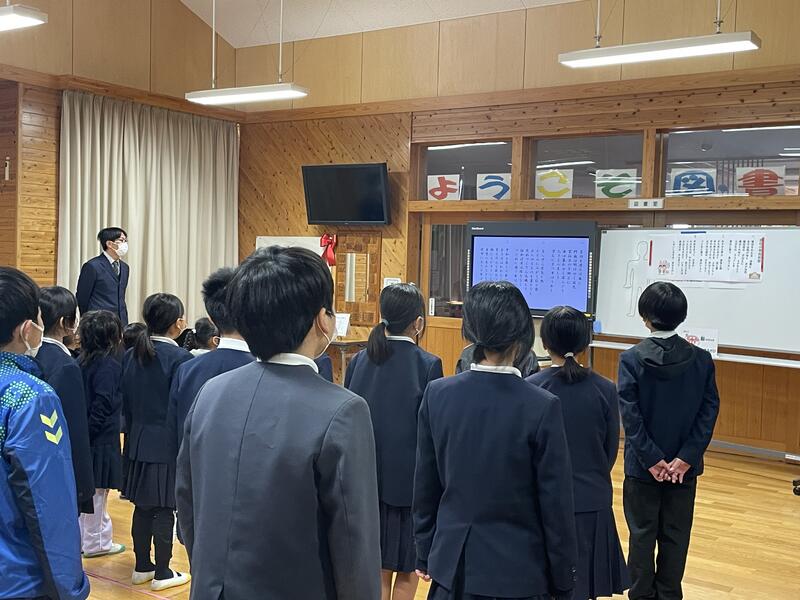 その後、全員で校歌を歌い、計画委員会から赤い羽根共同募金の集計結果の報告がありました。