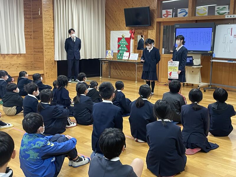 12月22日(金)の第4校時に、多目的ホールで冬休み前集会を行いました。