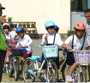 4月の交通教室には、安全協会の方から正しい自転車の乗り方を指導していただきました。