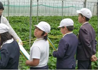 校区の農家の方のハウスへ行きました。今回がイチゴの学習最終回でした。まず、イチゴの収穫体験をさせていただきました。子ども達はニコニコとイチゴを収穫していきました。そして、とれたての美味しいイチゴをいただきました。しっかりイチゴの様子を観察し、事前学習したことをたくさん質問しました。学習内容は、学習発表会で紹介する計画です。