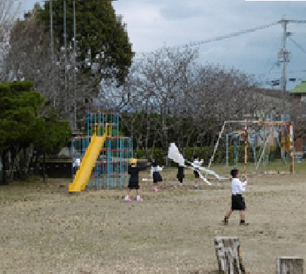 寒い冬季には体も温まる縄跳びの練習にも取り組んでいます。 8の字跳びが人気で跳んだ回数を伸ばそうと、かけ声を掛けながら,跳んでいます。