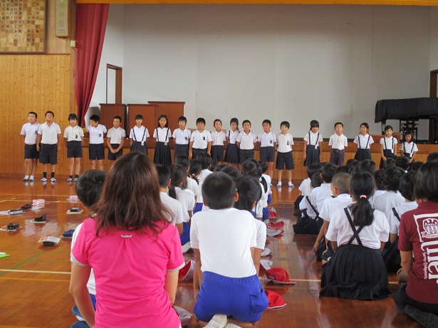 今回の音読集会は3・4年生が発表しました。3年生が阪田寛夫さんの詩「夕日がせなかをおしてくる」、4年生が谷口和彦さんの詩「ことば」を朗読しました。声の大きさや間の取り方など、それぞれの学年で工夫をして発表しました。最後に全員で感想交流をしましたが、多くの子どもたちが手を挙げて発表をしました。