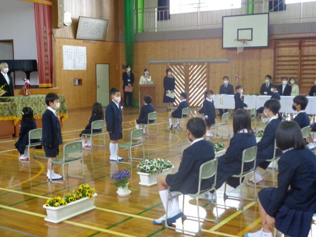 1時間目は、リモート形式で就任式と始業式がありました。新しい先生との出会いに子供たちは目を輝かせていました。また、担任発表では自然と拍手が起きていました。2時間目の学級開きでも、先生の顔をしっかりと見て、姿勢よく話を聞いていた子供たちです。全校児童95人で力を合わせて、1年間を過ごしてほしいです。