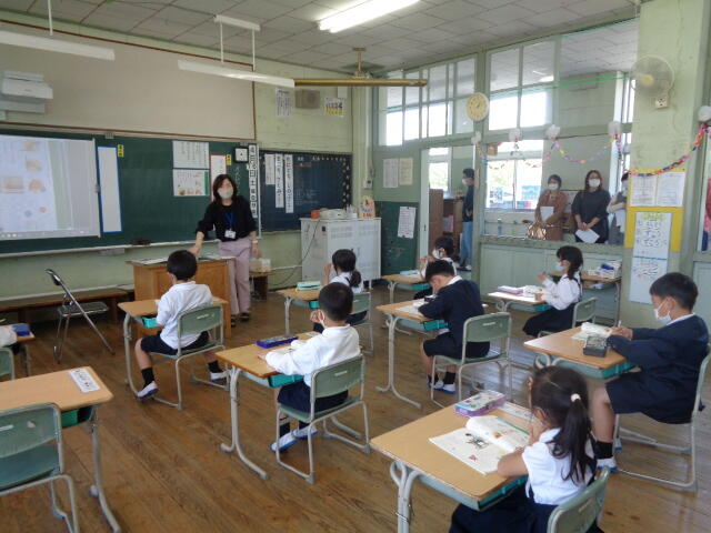 今年度の英語の学習は、英語専科の四ケ所由美先生がされています。子供たちは四ケ所先生といっしょに、英語の勉強をがんばっています。また、昨年度に引き続き、月に3~4回、ALTのクリスティーナ先生も来られます。