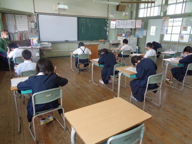 今回は国語、算数、理科のテストがありました。1日に3教科のテストでしたが、6年生の子供たちは、みんな自分の力を最大限に発揮して、テストをがんばりました。また、3~5年生は玉名市の学力調査をしました。