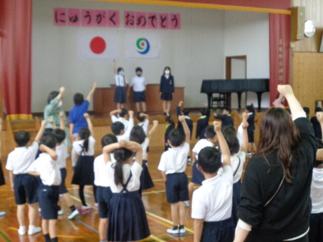 滑石小学校では、10人の1年生が入学してきました。新入生氏名点呼では、みんなしっかりと返事をすることができました。また、校長先生の話もしっかりと聞くことができ、すばらしい入学式でした。