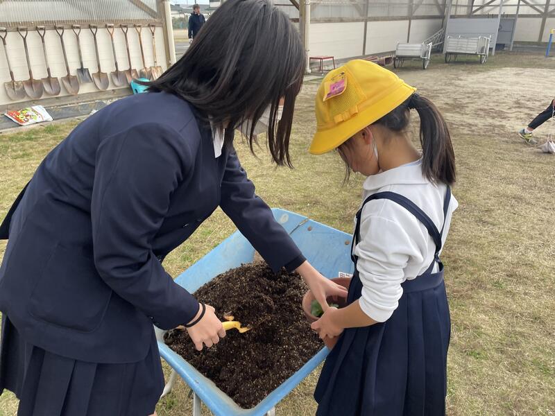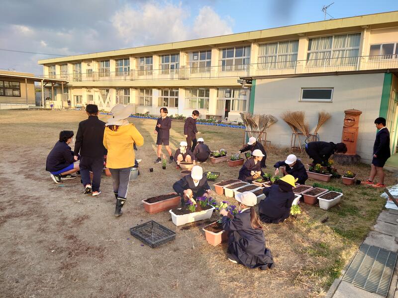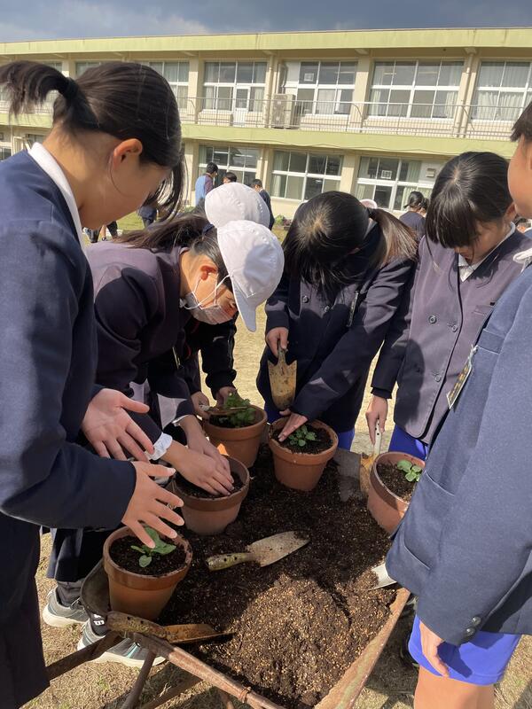 今回は、「一人一鉢+1.0(プラスワン)」にむけた花の苗植えを行いました。朝からボランティアで子どもたちが準備してくれた植木鉢に土を入れ、花の苗を植えました。滑石小が花いっぱいの学校になるように、水かけなどのお世話をしっかりとがんばってほしいです。