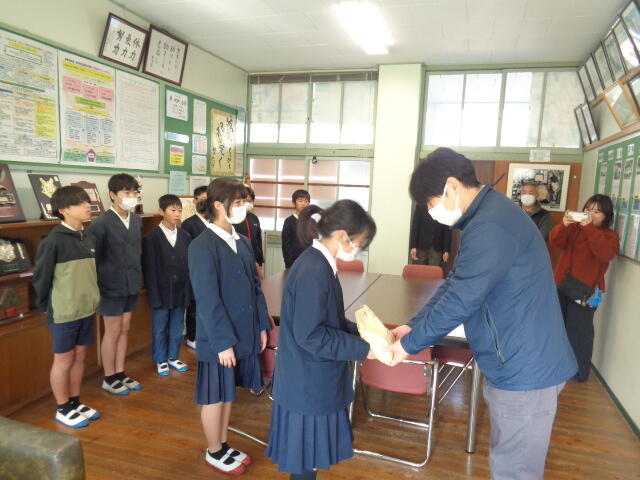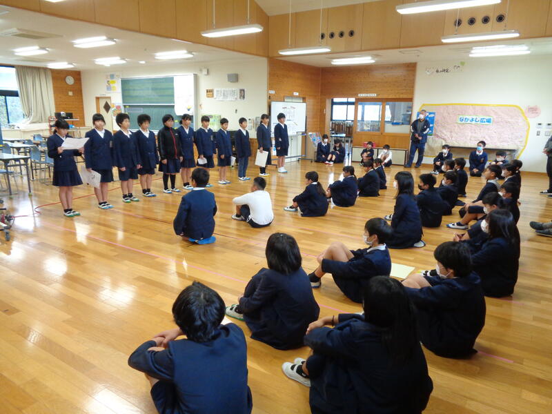 その後、全員で校歌を歌い、計画委員会から赤い羽根共同募金の集計結果の報告がありました。
