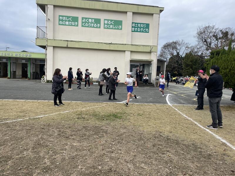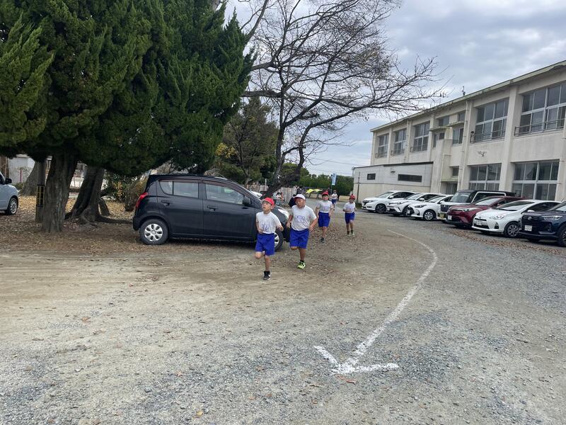 最初は1・2年生の児童が約1㎞のコースに挑戦しました。そのあと、3.4年生が約1.7㎞、5・6年生が約2.2㎞のコースを走りました。どの学年の子どもたちも最後まで全力で走り切り、たくさんの自己ベストと大会新記録が出ました。おとなりの滑石保育園の子どもたちの元気な声援もあり、とても温かみのある大会となりました。