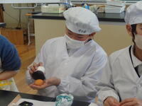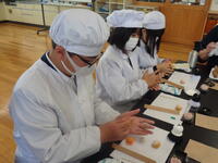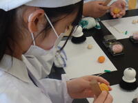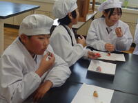 さかい製餅店の和菓子職人、酒井先生(ものづくりマイスター)に来校していただき、『練り切り』づくりに挑戦しました。酒井先生が作った作品を最初に見て、「難しそう…」「私たちにできるかなあ?」と言っていた子どもたちでしたが、丁寧に教えていただいて、子どもたちは楽しみながら作ることができました。自分が作った初めての『練り切り』を大事そうに家に持ち帰った子どもたちでした。