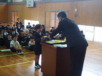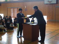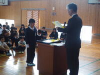 令和7年度の修了式を行いました。各学年の代表児童に校長先生から修了証を手渡されました。各学年からの児童発表も立派なもので、進級・進学に向けての心の準備ができているようでした。修了式が終わったあとには、卒業式に参加しない1・2年生が6年生に向けて、今までお世話になったことへお礼の言葉を伝える場面がありました。明日は3・4・5年生で、感謝の気持ちを込めて6年生を送り出しましょう!
