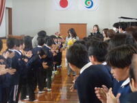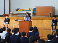 今日は、令和7年度の退任式でした。今年度は1人の先生とお別れです。退任式では、計画委員会の子どもたちが代表して感謝の気持ちを伝え、全校児童で花道を作ってお見送りをしました。会が終わった後も、手紙を渡したり、思い出話をしたり、たくさんの子どもたちがお別れと感謝の気持ちを伝えていました。