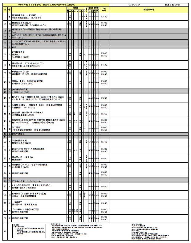 5月行事をアップしました。あくまで予定ですので、最終確認は学級通信にてされてください。