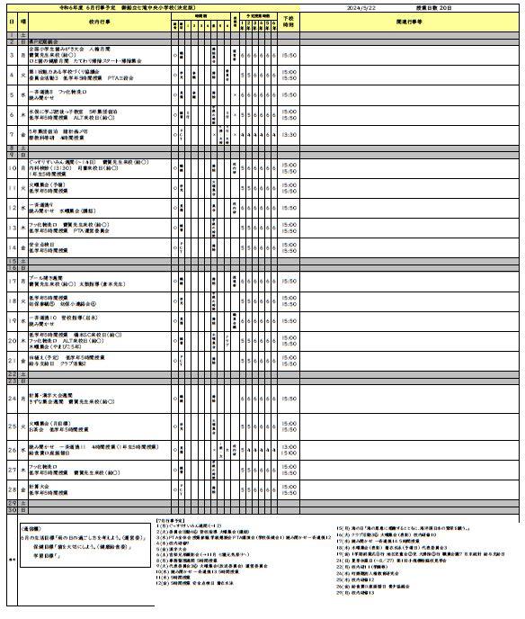 さて、令和7年度6月行事予定表をアップします。最終確認は、学級通信にてお願いします。
