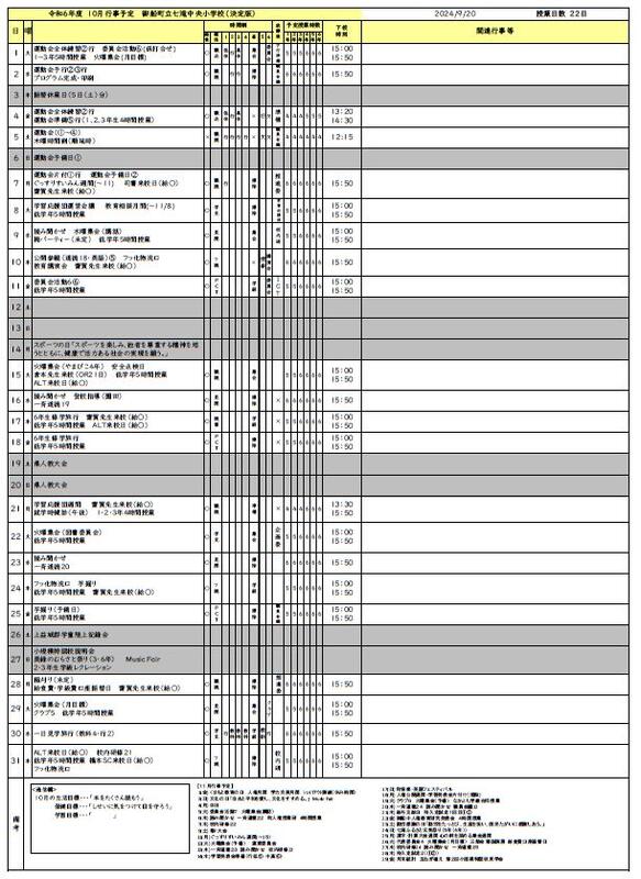 なお、予定表ですので、各学級通信で最終確認されて下さい。