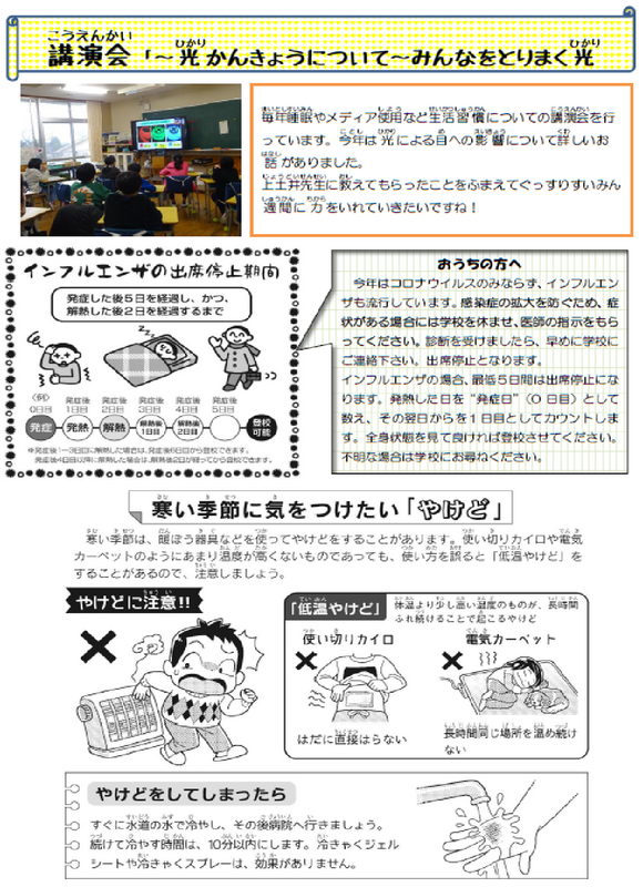 1月23日~1月27日の学校給食週間の活動の様子や、今年流行しているインフルエンザの対応等について載せています