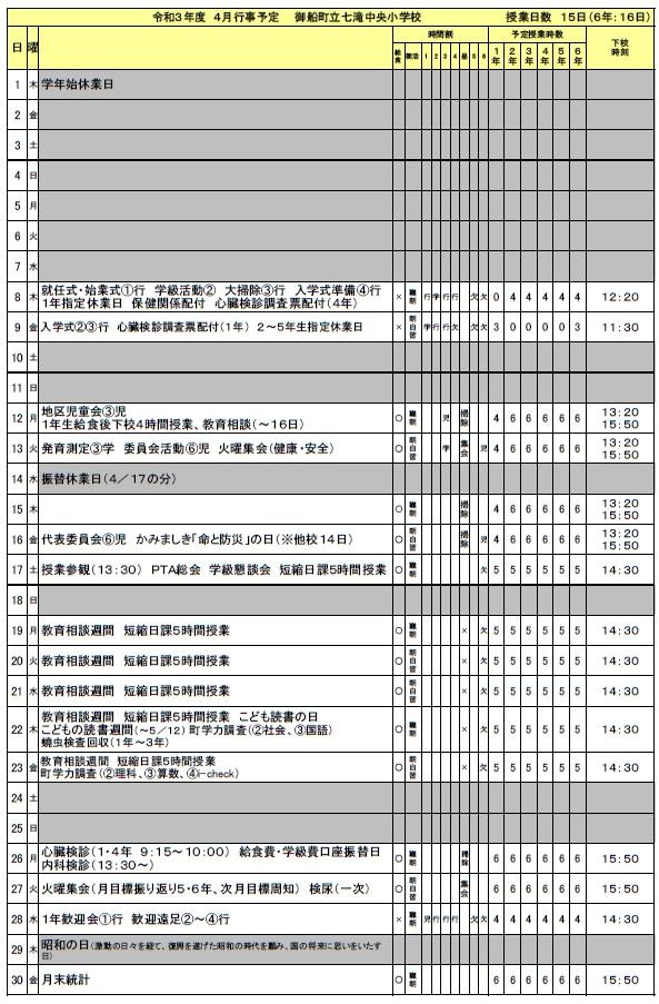 また、4月は教育相談等で、下校時刻が変わる日があります。