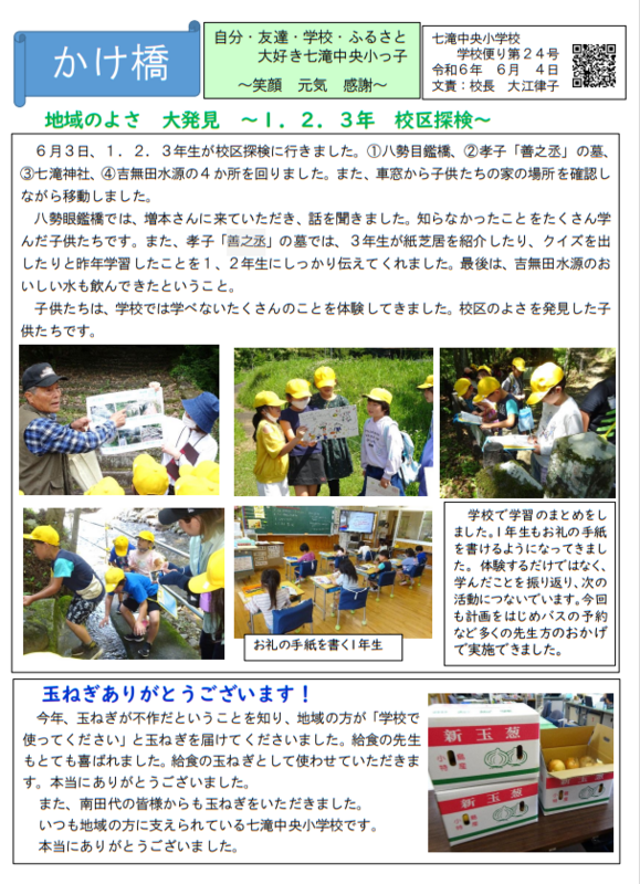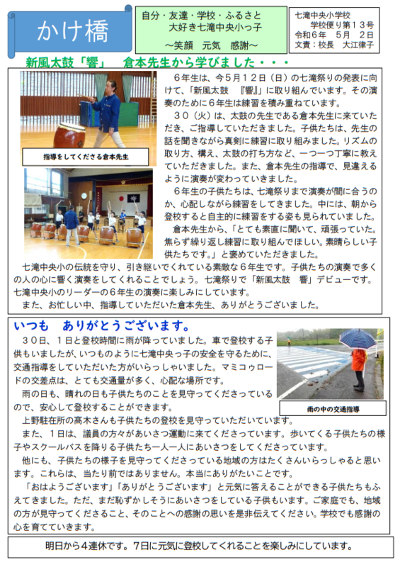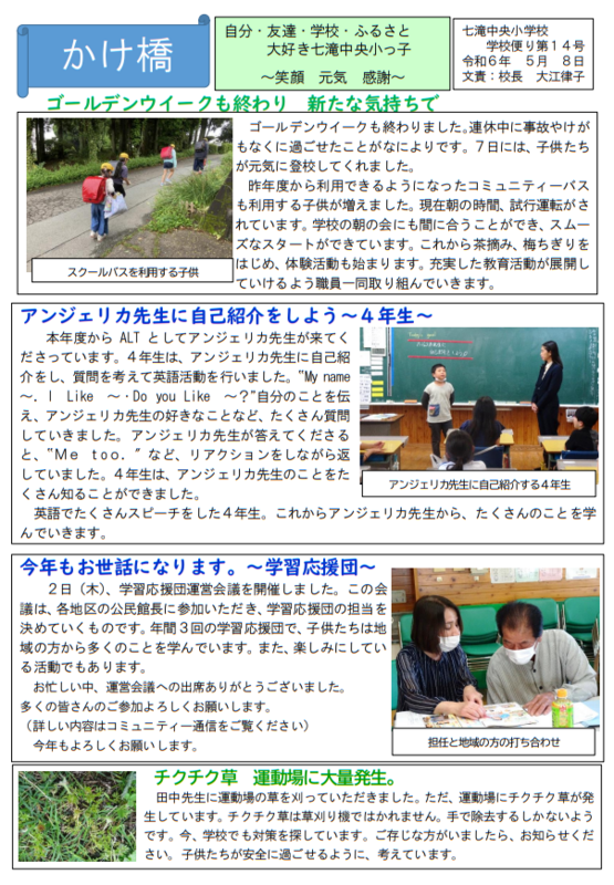 さて、学校だより(7/4号)を更新しましたので、どうぞご覧ください。