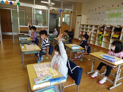 今日も齊賀先生の英語指導日です!1年は「OneからTenまでのかずでたのしくあそぼう」でした。先生をまねたアクセントと発音ではっきりと言えました。この調子でどんどん上手くなってください。