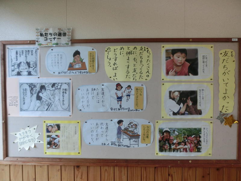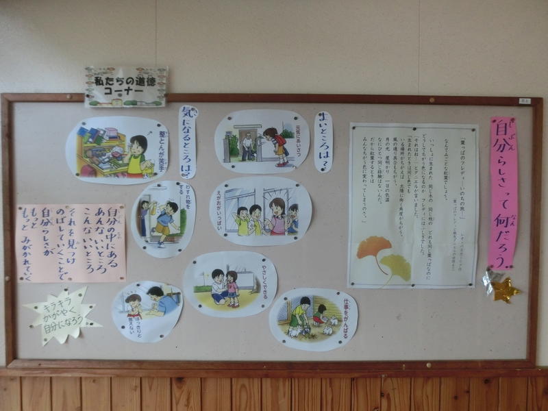 水曜日の3時間目は一斉道徳の日です。工夫された授業に、子供たちはしっかり考えて、発表をがんばっていました。写真は3年生と4年生の授業の様子です。担任外の先生も、授業に入って子供たちの心の成長をサポートします(^^)/