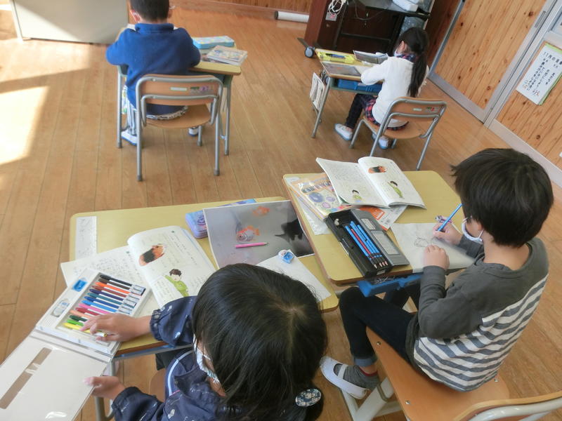 1年生は国語「じどう車ずかんをつくろう」を学習していました。勉強した説明文をもとに、自分たちのオリジナルの自動車の説明入りの図鑑を作ります。世界に一つだけのステキな図鑑ができあがりますね(^^)/