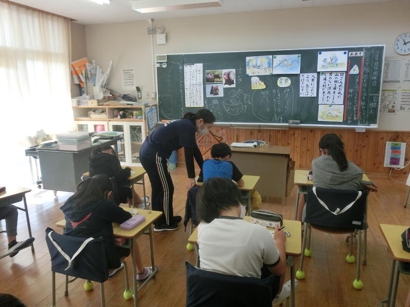3年、国語「詩を味わおう」。詩の情景や表現の工夫を考えて、詩のよさを味わっていました。