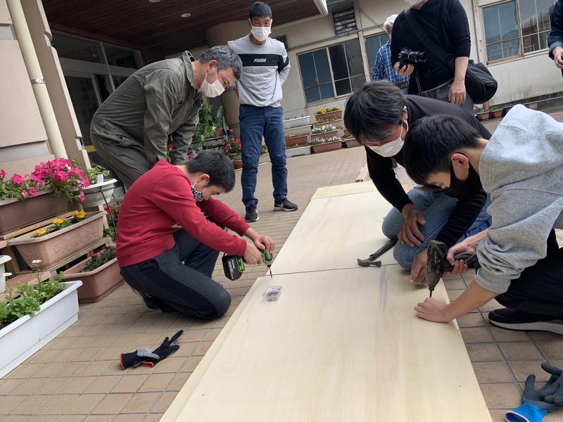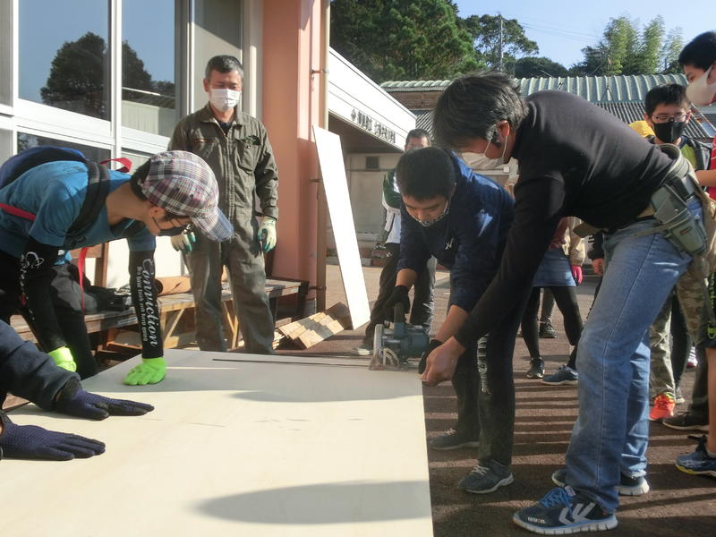PTAで「門松づくり」をしました。野口大樹PTA会長を中心に、門松を作っていただきました。お正月に向けて、校門の両脇に立派な門松を立てることができました(^^)/