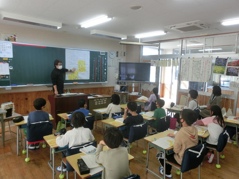 水曜日3時間目は「一斉道徳」。4年生は「花さきやま」を教材にした授業でした。パネルシアター風にお話が展開していき、工夫された授業に子どもたちは真剣に学んでいました(^^)/