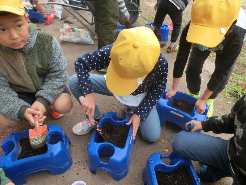 1・2年生はチューリップの球根植えをしました。春には新一年生を色鮮やかに咲いたチューリップでお迎えできそうです。心をもめて植えてくれてありがとう(^^)/