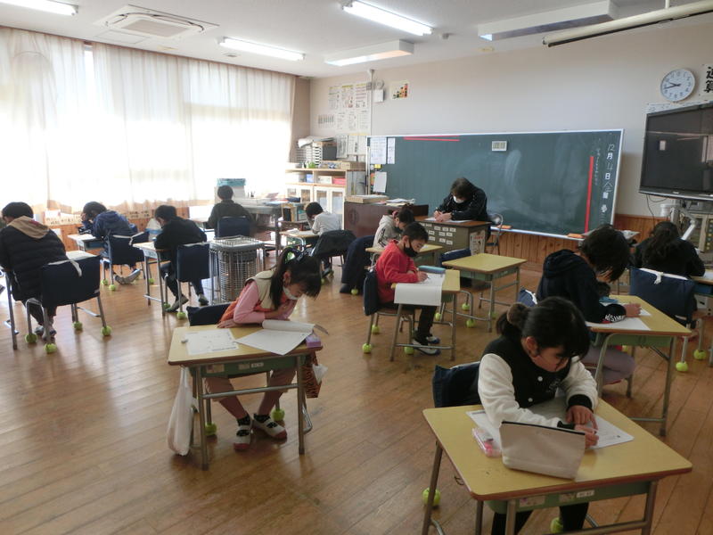 3~6年生は「熊本県学力・学習状況調査」(熊本県教育委員会)を頑張りました。シーンとした教室の中で、解答用紙の上を鉛筆が踊るように動いていました。【注】正解を書いていたのか、ただ踊っていただけなのかは未確認(*^^*)