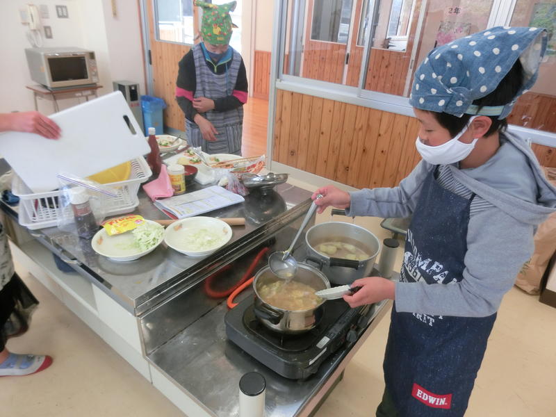 6年生は家庭科「まかせてね 今日の家事」で調理実習をしていました。班でメニューから考えて、協力して調理に取り組んでいました(^^)/