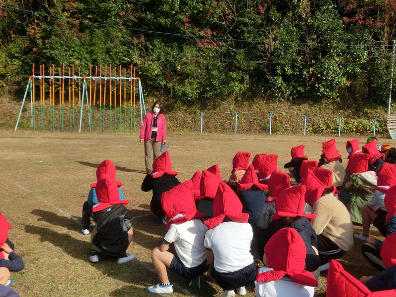 「火災避難訓練」をしました。1分53秒で素早く集合完了!!さすが、素早い!少ない!校長先生から、火事を起こさないために大切なことのお話をしていただきました。空気が乾燥する季節です。火の元にはくれぐれも注意しましょう。決して「まかせてね 今日の火事」にならないように!
