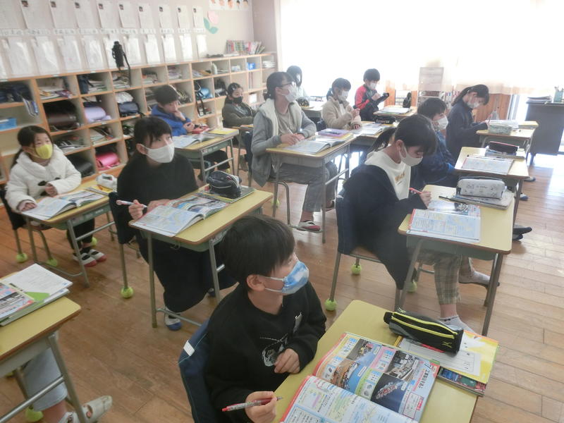 5年生は国語で、新聞の構成や工夫について調べる学習をしていました。1ページ1ページめくりながら、分かったことをまとめることができました(^^)/