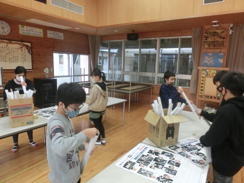 6年生は「版画カレンダー」の配付準備をしていました。「版画カレンダー」の作成と配付は、本校が開校してから、学校と地域の絆を深めるためにずっと続けられてきました。お世話になった方や、校区にお住いの独居老人のお宅に、合計300枚をお届けしています。経費は御船町社会福祉協議会様、青少年健全育成会議七滝中央支部様にご支援していただいています。子供たちが作った版画カレンダーを飾って、よいお年をお迎えください。校区の皆様の健康とご多幸を心よりお祈り申し上げます(^^)/